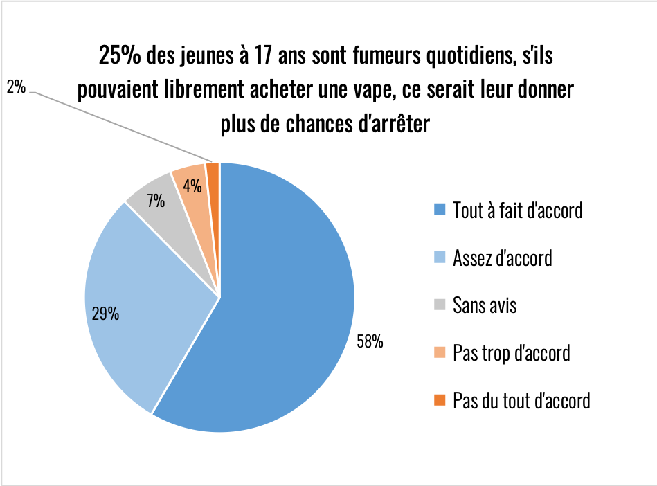 En France, nous avons 25% des jeunes de 17 ans qui sont fumeurs quotidiens. C’est une honte quand on compare à de nombreux autres pays. Mais malgré cela, les anti-tabac refusent catégoriquement d’évoquer le vapotage comme une solution à étudier. Il se font en cela les meilleurs alliés de l’industrie du tabac qui cible en priorité les jeunes.