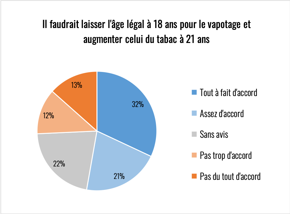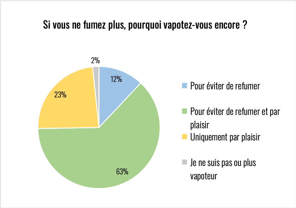 Pour la grande majorité des répondants, c’est les deux. Notons que pour près d’un quart, vapoter n’est qu’une question de plaisir.
