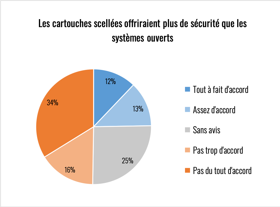 Hormis la question du coût (au moins 3 fois plus cher au ml) et d’environnement (création désastreuse de déchets composites non-recyclables), rappelons que les problèmes causés aux USA ont été créés par des truands qui ont conditionné justement des cartouches scellées. Le problème ne vient donc pas du contenant, mais plutôt du produit et de son fabricant.
