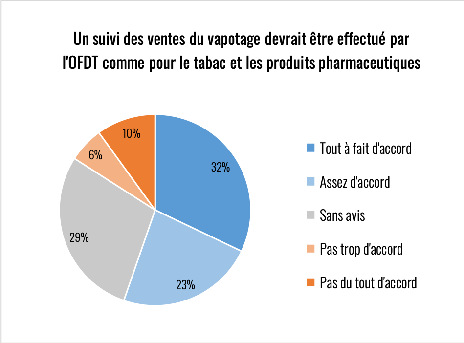 Un des pans de l’omerta qui règne en France, il n’y a aucun suivi vraiment régulier sur le développement du vapotage. L’OFDT s’intéresse à tous les produits du tabac, aux substituts nicotiniques, aux médicaments et aux consultations de Tabac Info Service, mais rien sur le vapotage, à part de temps en temps un petit « avis » dans les commentaires des tableaux de bord.